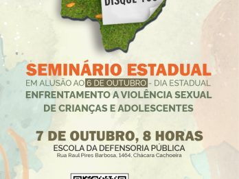 Estão abertas as inscrições para o Seminário do Dia Estadual de Enfrentamento ao Abuso e à Exploração Sexual de Crianças e Adolescentes, que será realizado em 7 de outubro, na Escola Superior da Defensoria Pública, em Campo Grande. As inscrições